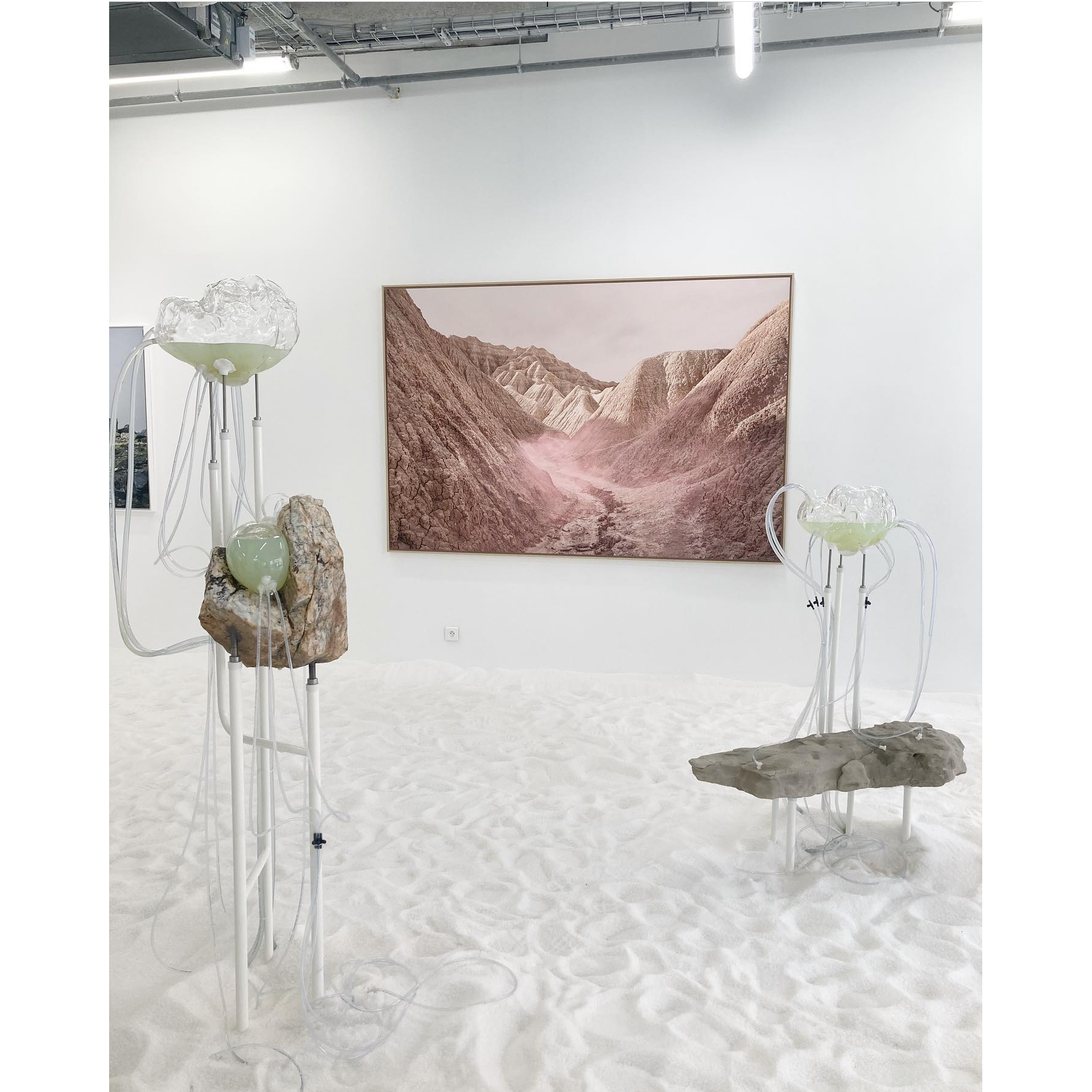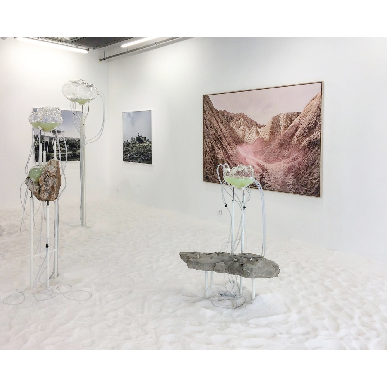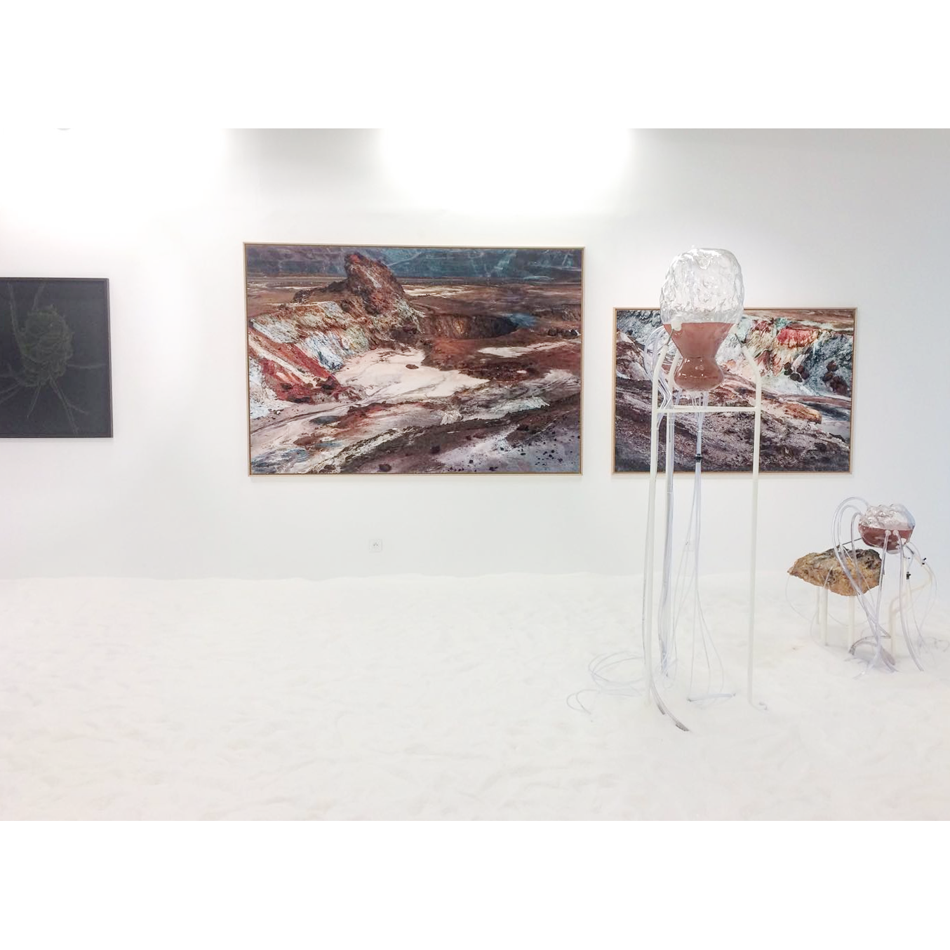 L’exposition nous plonge dans les états possibles de la matière et sa transmutation. Elle dévoile des strates imperceptibles du paysage qui, à travers leur métamorphose, génère un nouveau territoire à la fois possible et imaginaire.