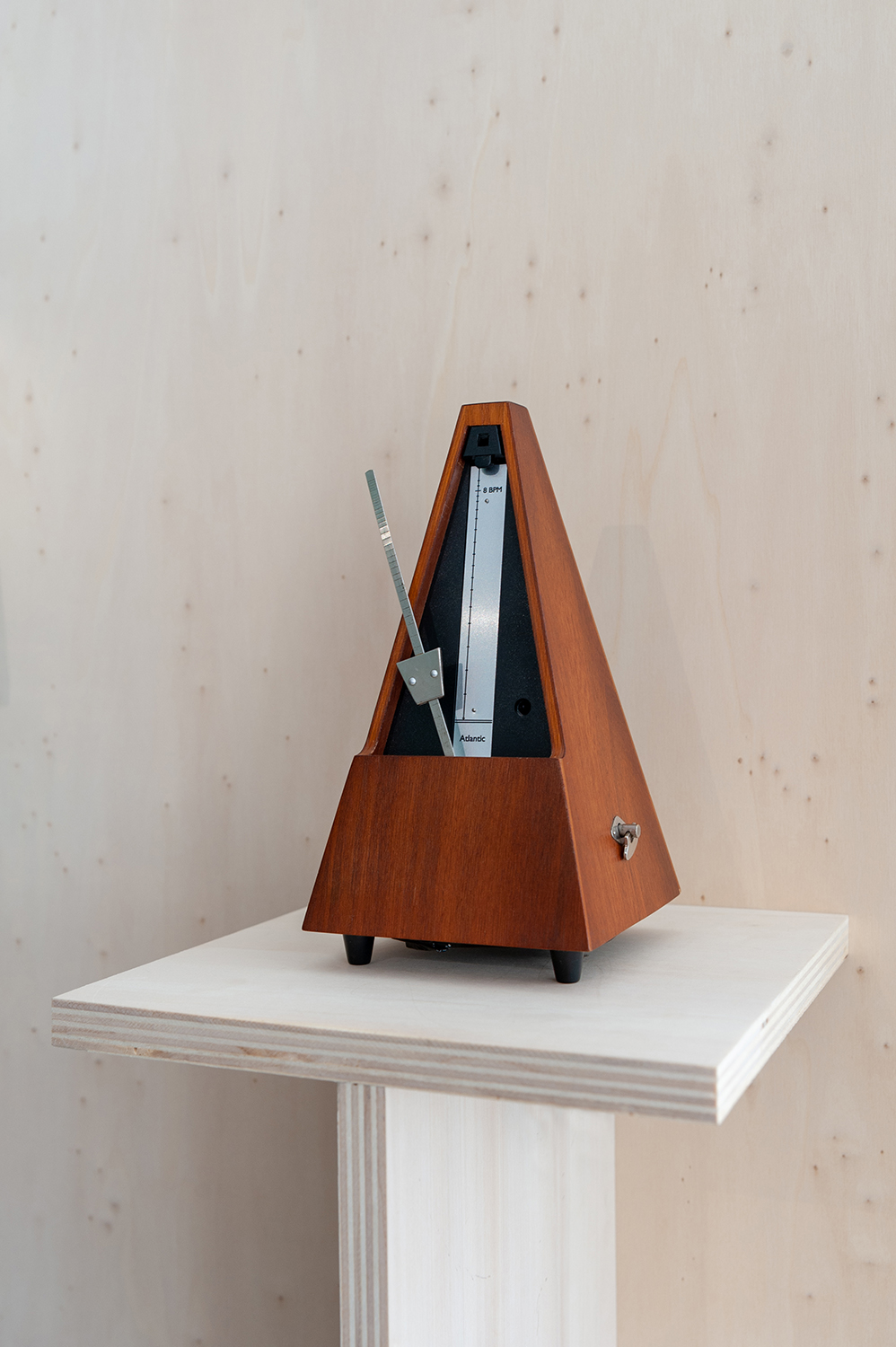 8 B.P.M. (2022) a été réalisé lors d’une invitation par Finis Terrae au Sémaphore du Créac’h, sur l’île d’Ouessant en 2021. Entouré par l’océan pendant un mois, l’artiste a exploré l’île en solitaire et s’est interrogé sur la relation de l’homme face à la puissance de la mer. Marqué par le son des vagues qui s’écrasent sur les rochers, Simon Faithfull a produit un texte édité par artconnexion pour l’exposition. Cette édition est accompagnée d’un métronome dont le mécanisme a été modifié pour fonctionner au rythme des vagues : 8 battements par minute.