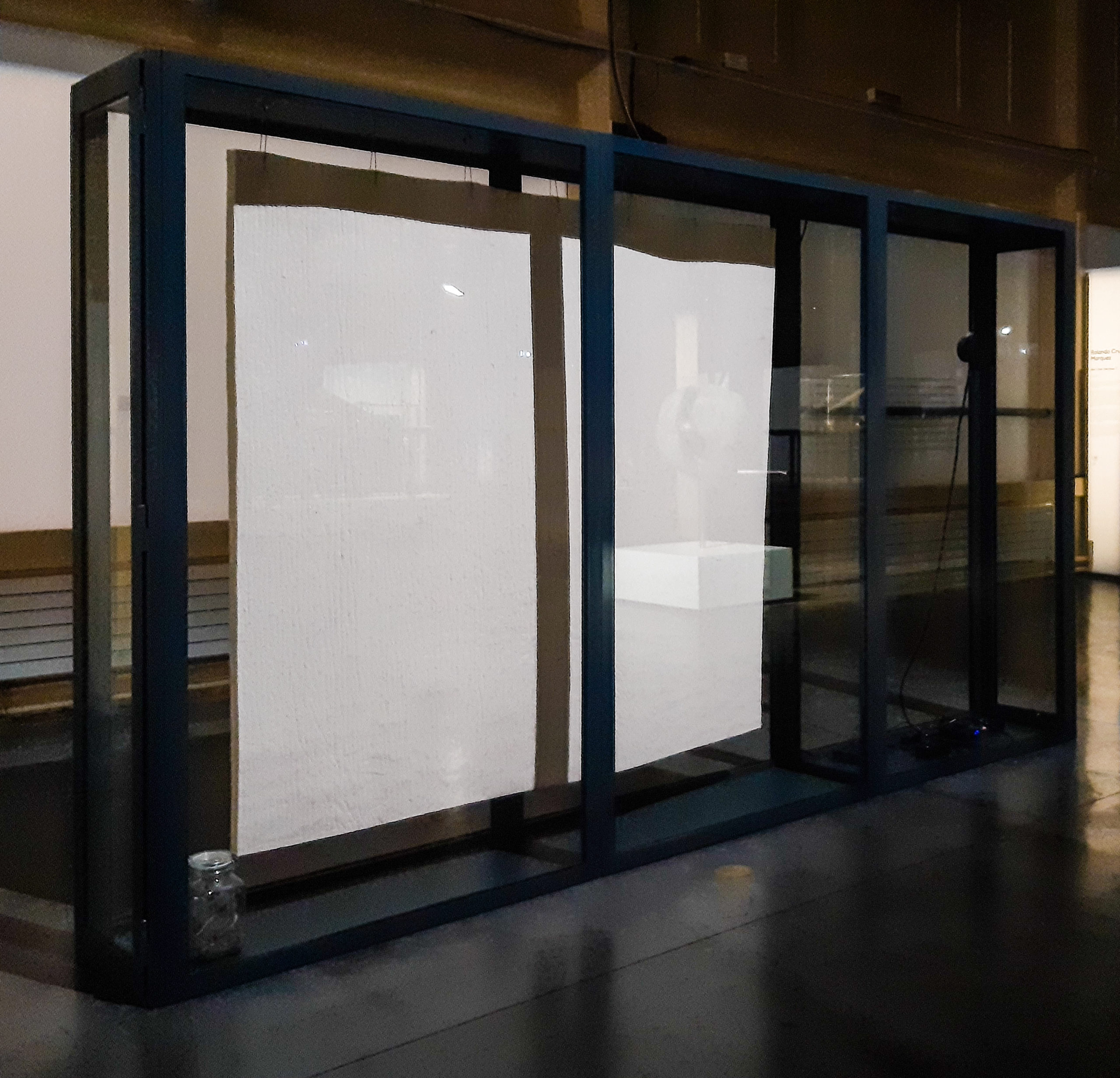 Entre ses parois vitrées, ORGAN accueille des Tineola bisselliella, lépidoptères appartenant à la famille des Tineidae, plus communément appelés mites. Elles y ont engagé avec la laine animale, matériau complice à leur perpétuation, une étreinte dévorante qui durera, aux dires des scientifiques, des centaines d’années. Les chants nuptiaux émis par la colonie, des ondes vibratoires d’une amplitude infime, très lointaines de celles discernées par les humains, ont été captés par un dispositif d’enregistrement ultrasensible dans un sas acoustique particulièrement isolé.