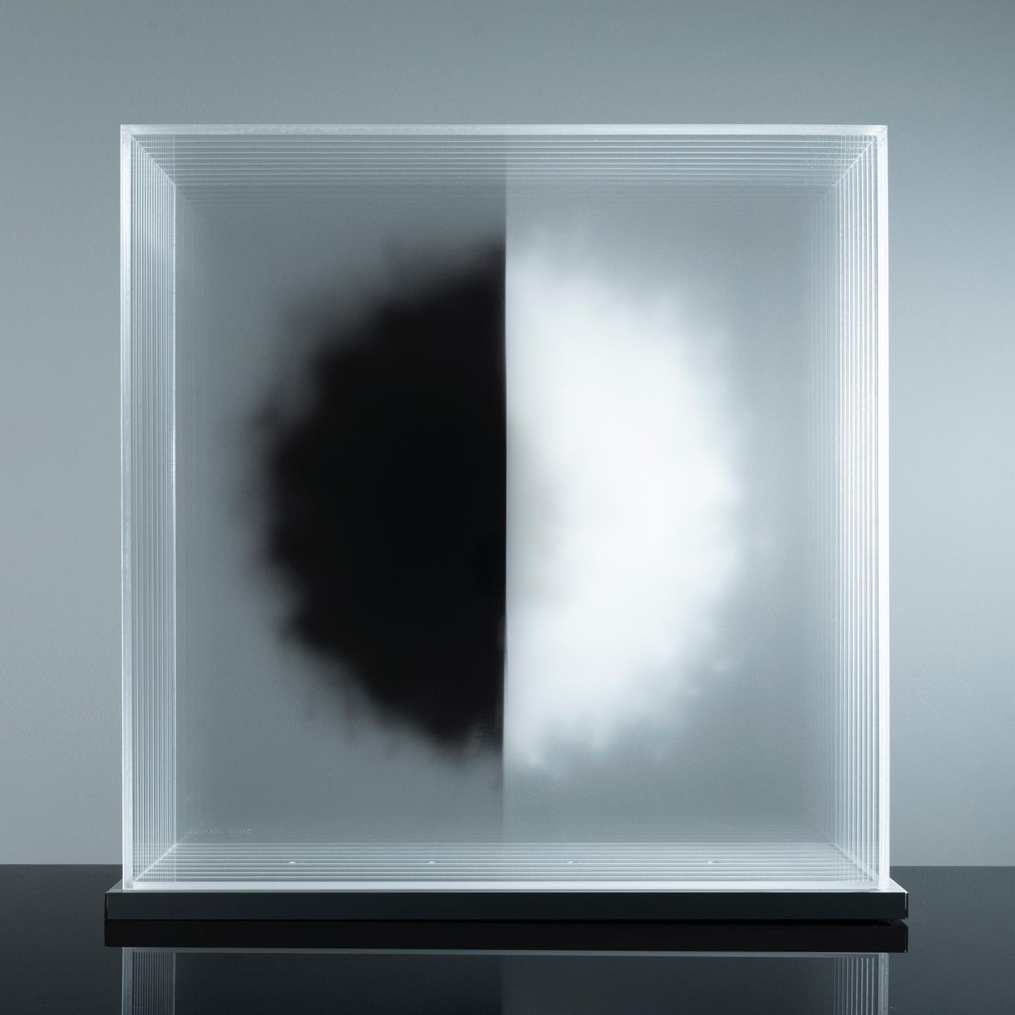 « Black and White Series – Dichotomy » | Acrylic paint on layered transparencies | 56 x 56 x 20 cm