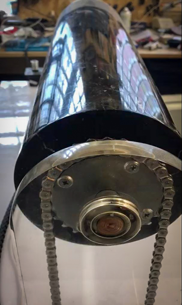 L’installation s’inspire du gramophone à cylindre d’Edison, dont elle reprend la forme mais en transforme le dispositif cherchant à capter à travers les ondes, les fréquences, les vibrations des messages d’une autre dimension.