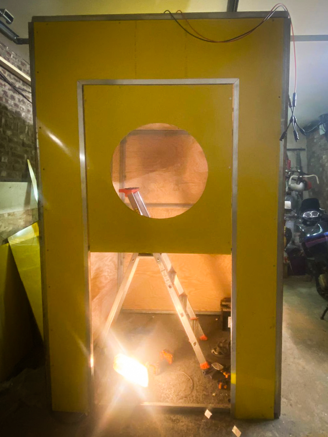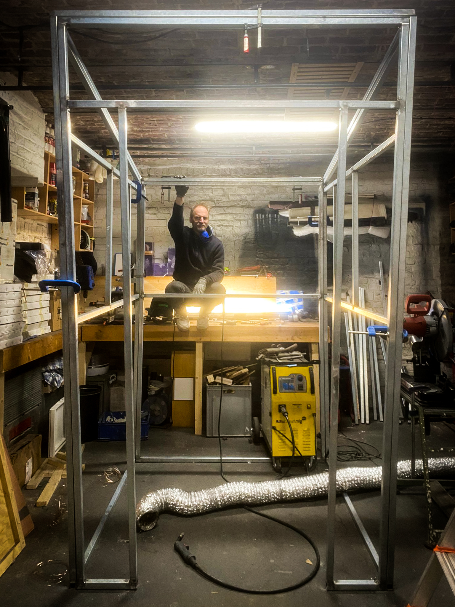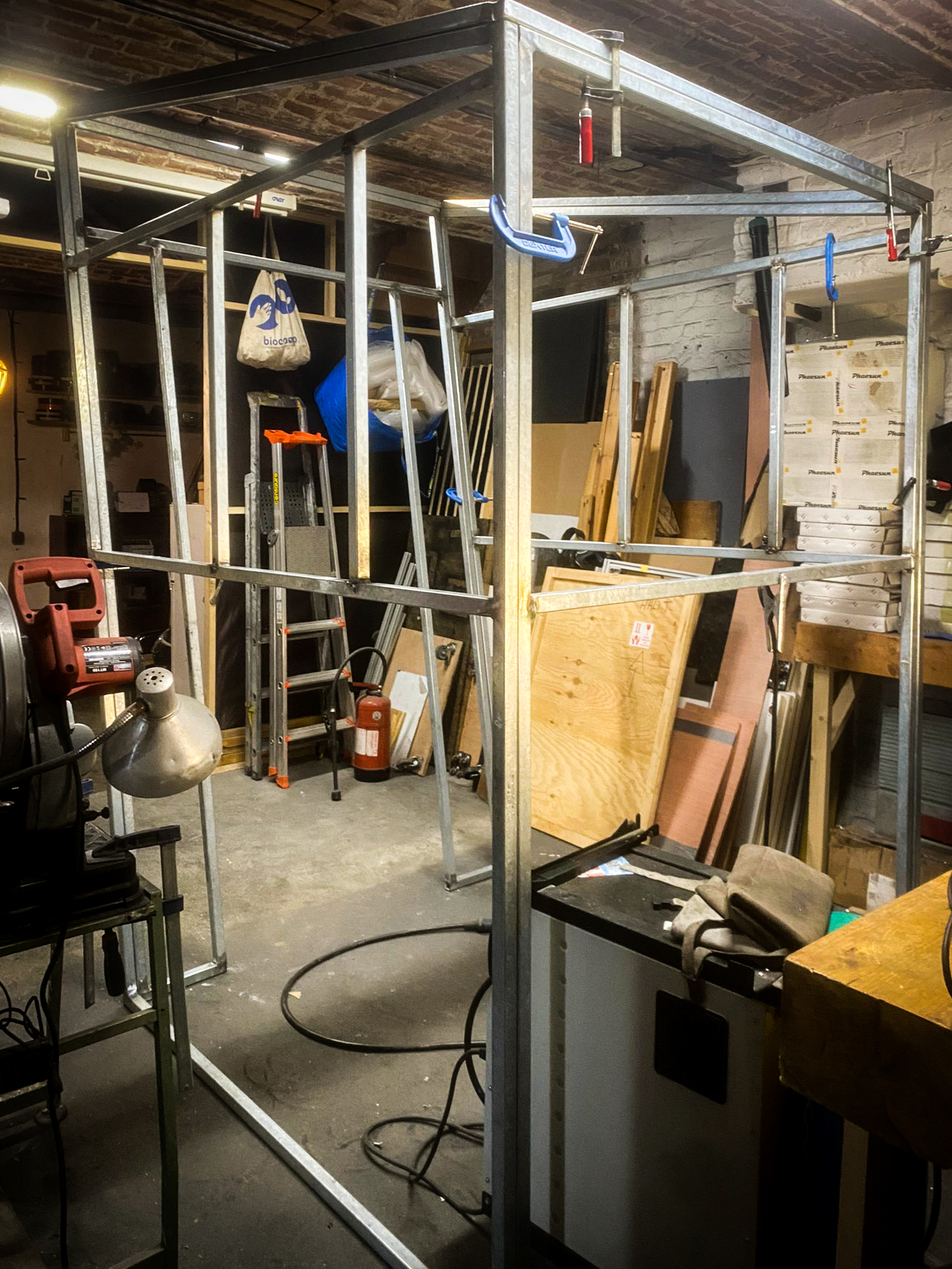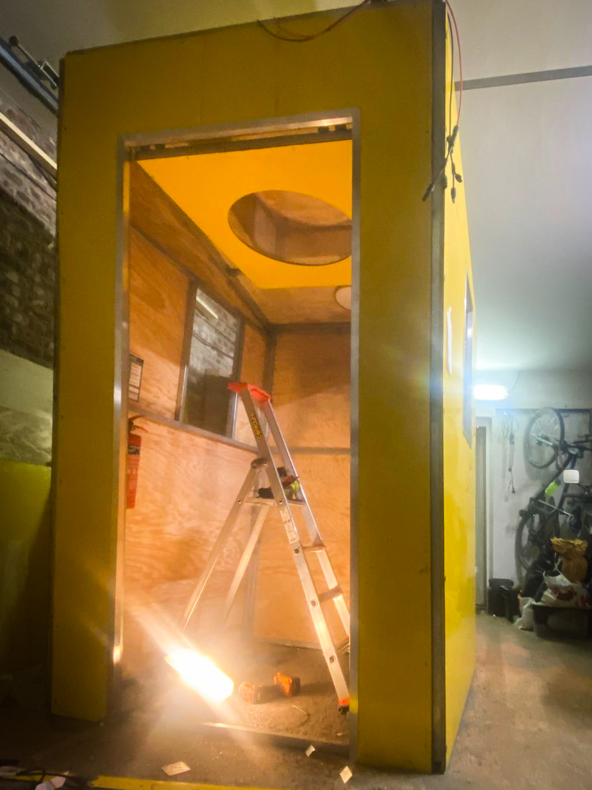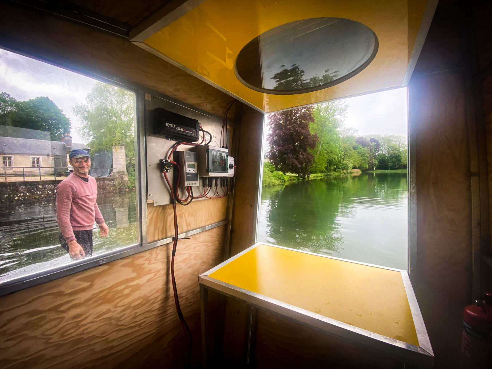 S’apparentant à une cabine de bateau de pêche, l’architecture sans architecte imaginée par Philémon Vanorlé est une friterie marémotrice et ascensionnelle capable de se maintenir hors de l’eau. Avec humour l’artiste questionne le phénomène bien réel de la montée des eaux : comment l’homme pourra maintenir une civilisation, un rapport à la terre et à la fertilité, s’il n’est plus sur terre ? Quelles sont ses chances de survie si la production de frites dépend de l’énergie produite par les panneaux solaires – qui sont aussi l’enseigne de la friterie ?