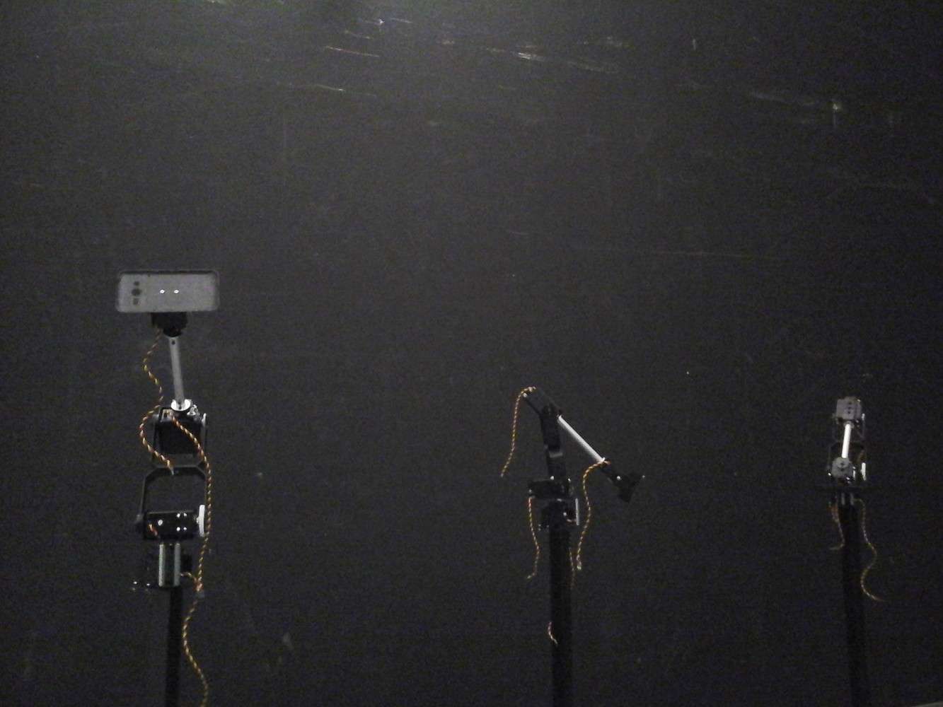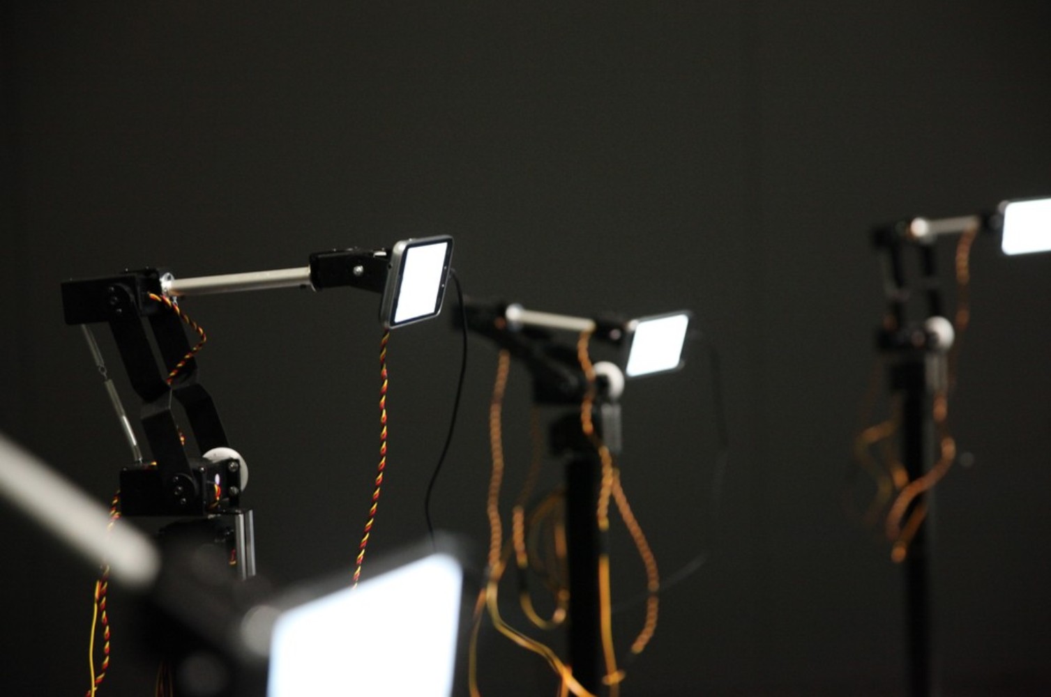 Réalisée par Fabien Zocco en 2016, L’Entreprise de déconstruction théotechnique organise une collision entre l’Ancien Testament et un agencement machinique qui en érode le sens. La première altération consiste à introduire le texte biblique dans une succession d’algorithmes informatiques. Le texte est ainsi parasité par des contraintes aléatoires qui en déforment le sens. Cela donne lieu à des formules telles “Like someone laughing in the eyes of his sons-in-law”, “I’m going to fructify you a lot”, etc. Ces modifications ont des effets ambivalents. Parmi les propositions produites, certaines sont intelligibles, voire relèvent d’une poésie abstraite due à des distorsions sémantiques ou sonores. D’autres, au contraire, révèlent une puissance malveillante du langage : elles creusent un vide au sein de sa capacité à faire sens. À la manipulation du texte, de sa matérialité et de son sens, s’ajoute une seconde manipulation, littérale cette fois, qui amplifie son altération. Les propositions sont en effet énoncées par des voix de synthèse émanant de smartphones fixés à des bras robotisés en mouvement, eux-mêmes reliés à une structure métallique semi-circulaire reposant au sol. Pourtant, cette intensification du technique (des artefacts attelés à des artefacts) aboutit à autre chose qu’à lui-même. Les voix se font entendre en solo, en duo ou en polyphonie. Les mouvements des bras, quant à eux, évoquent une chorégraphie presque animale. Tel est le sens de cette société de robots énonçant collectivement des éclats de l’Ancien Testament : mêler langage déconstruit (écrit et oral), préhension, divin, technique, animal et humain pour créer entre eux une proximité ou, au contraire, faire en sorte qu’ils se désidentifient.