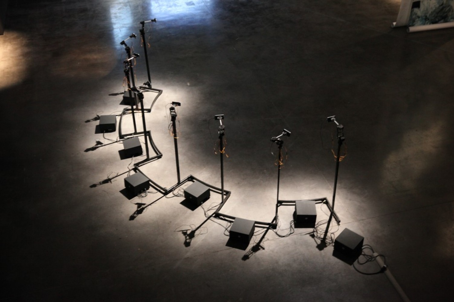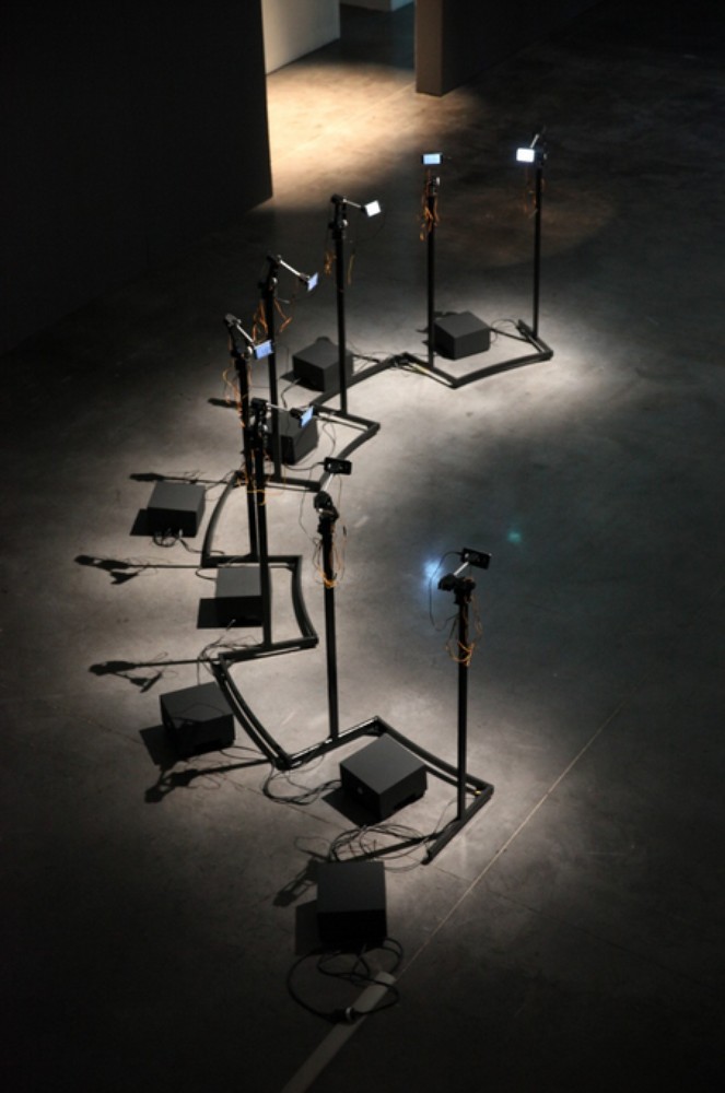 Une voix se fait entendre au coeur de l’espace ainsi défini. Elle donne corps à un texte généré selon un protocole impliquant un logiciel d’intelligence artificielle détourné. Cette voix, répartie sur plusieurs pistes, se superpose à elle-même et s‘agence en continu au fil d’une partition combinatoire non linéaire.