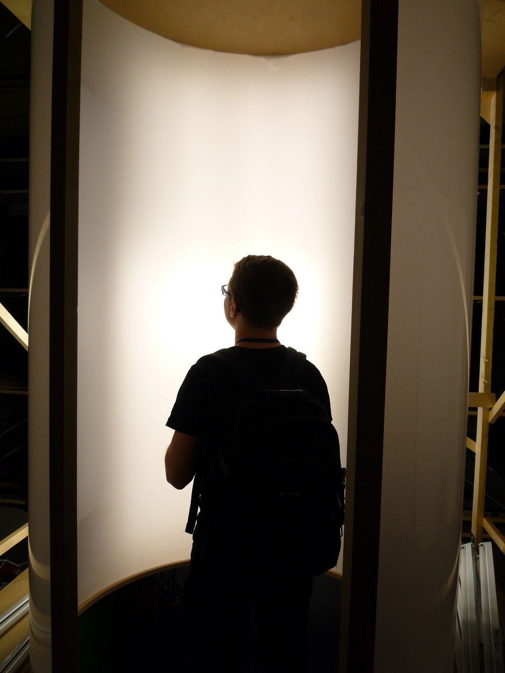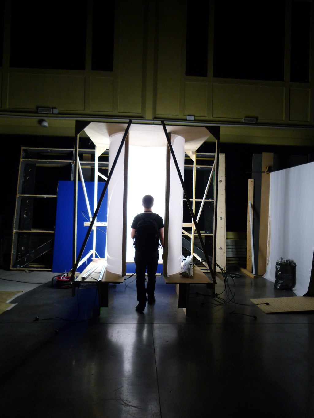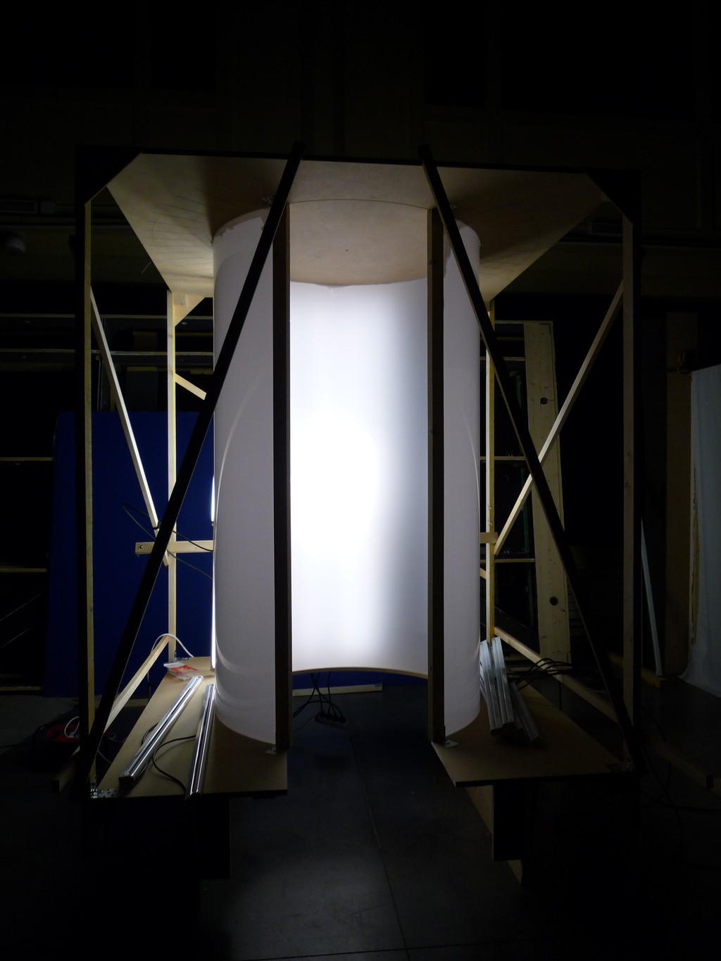 A la fois micro architecture immersive, processus d’écriture et forme sonore, A Mind-Body Problem invite à faire l’expérience d’une désorientation. Le dispositif se présente sous l’aspect d’un cylindre pénétrable, sa paroi intérieure diffusant une lumière blanche uniforme. Le spectateur, enveloppé dans cet écran immaculé, voit son champ de vision intégralement capturé par le dégagement lumineux et perd tout repère spatial.