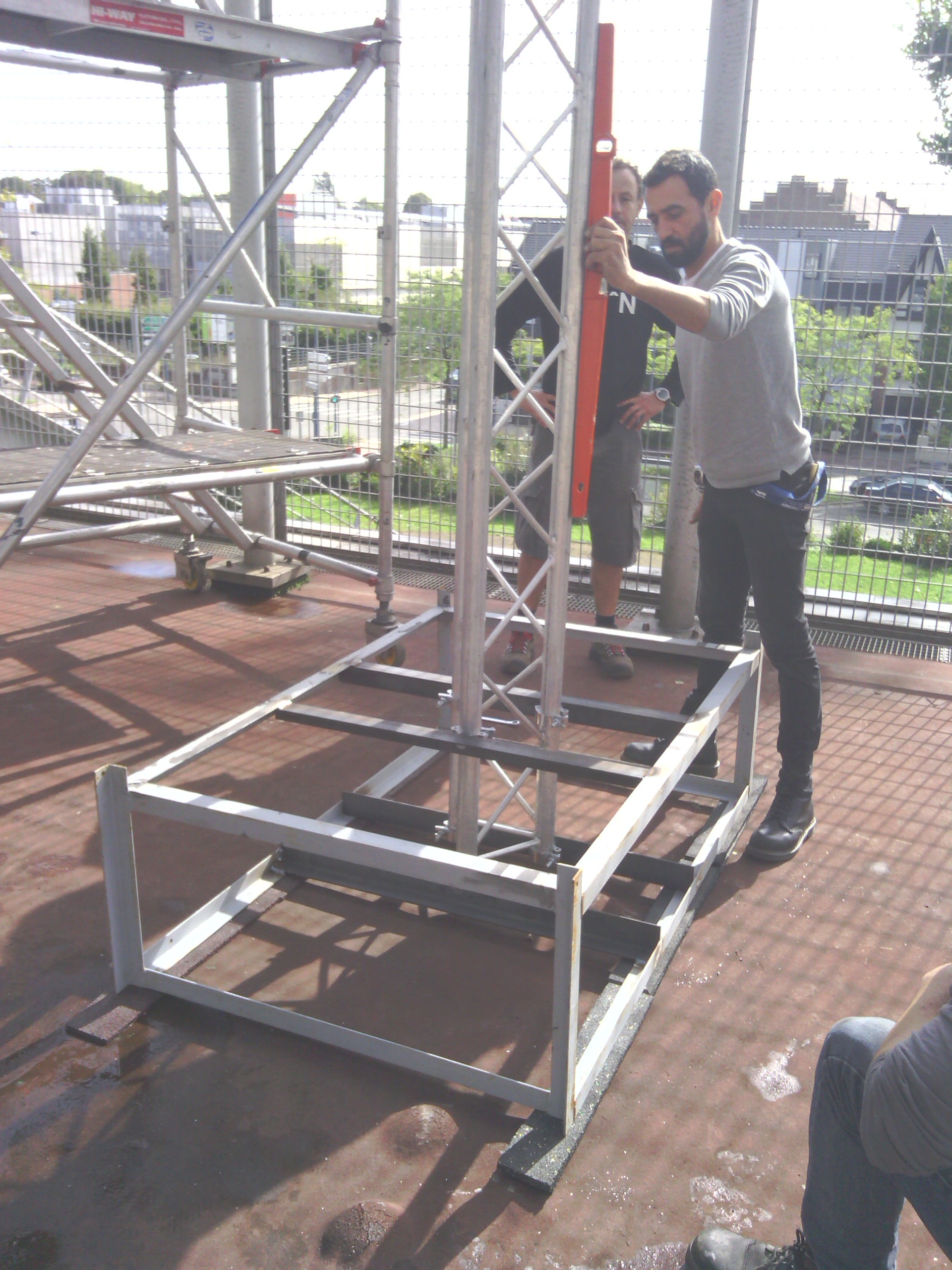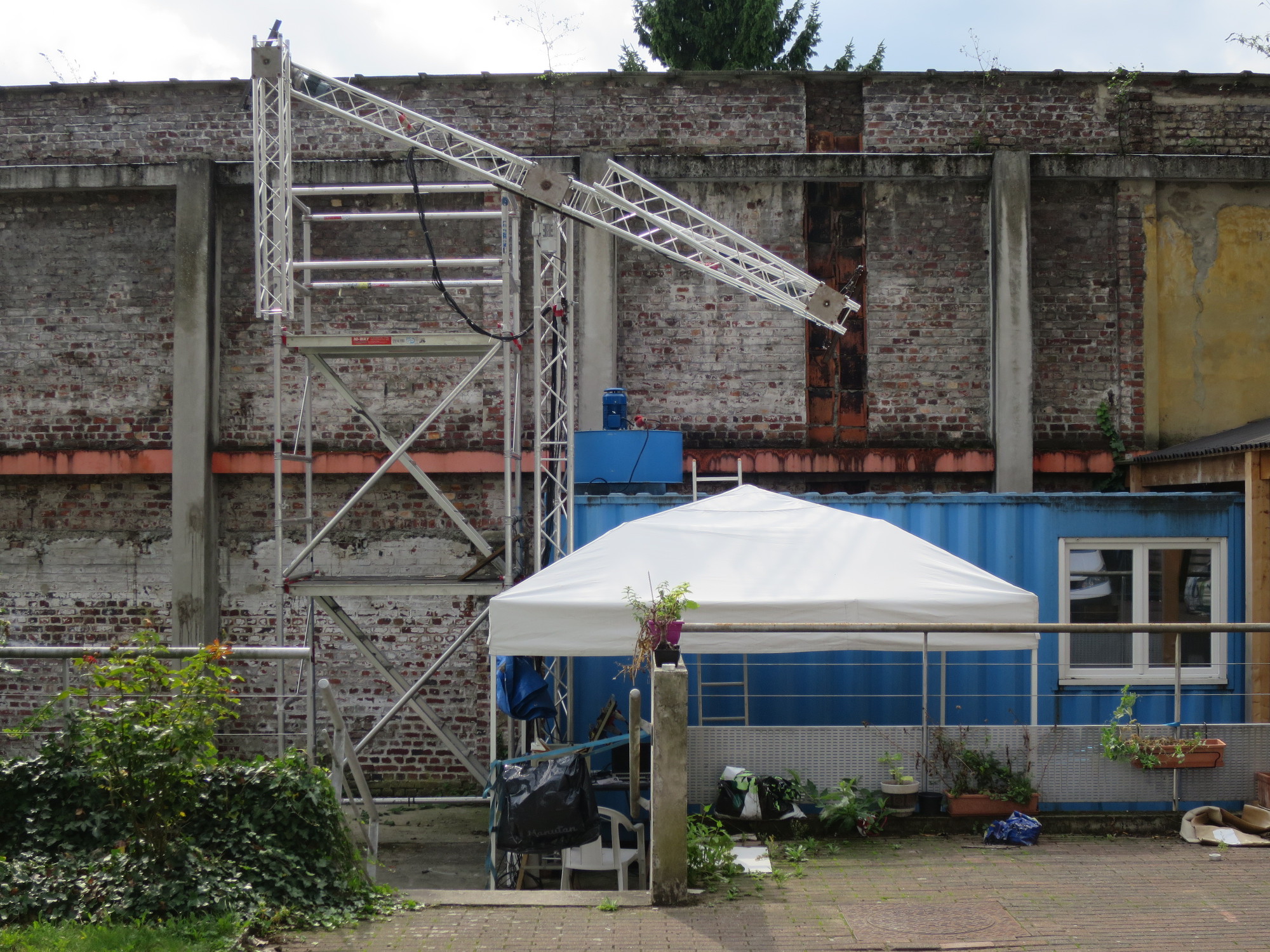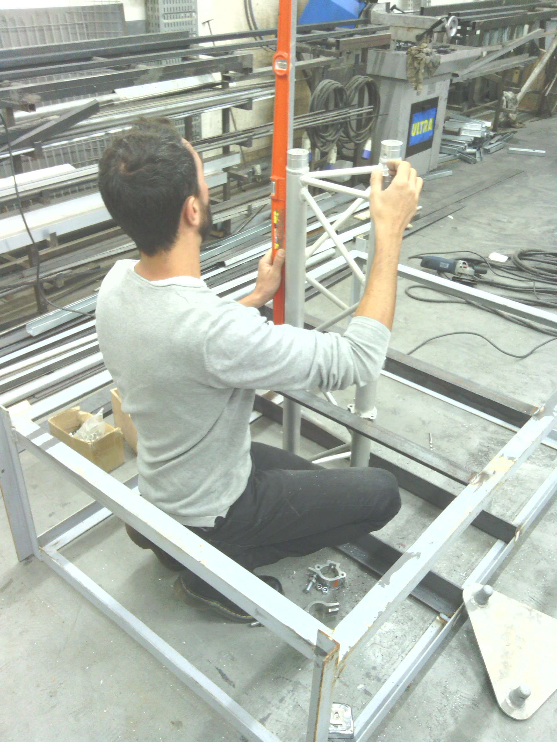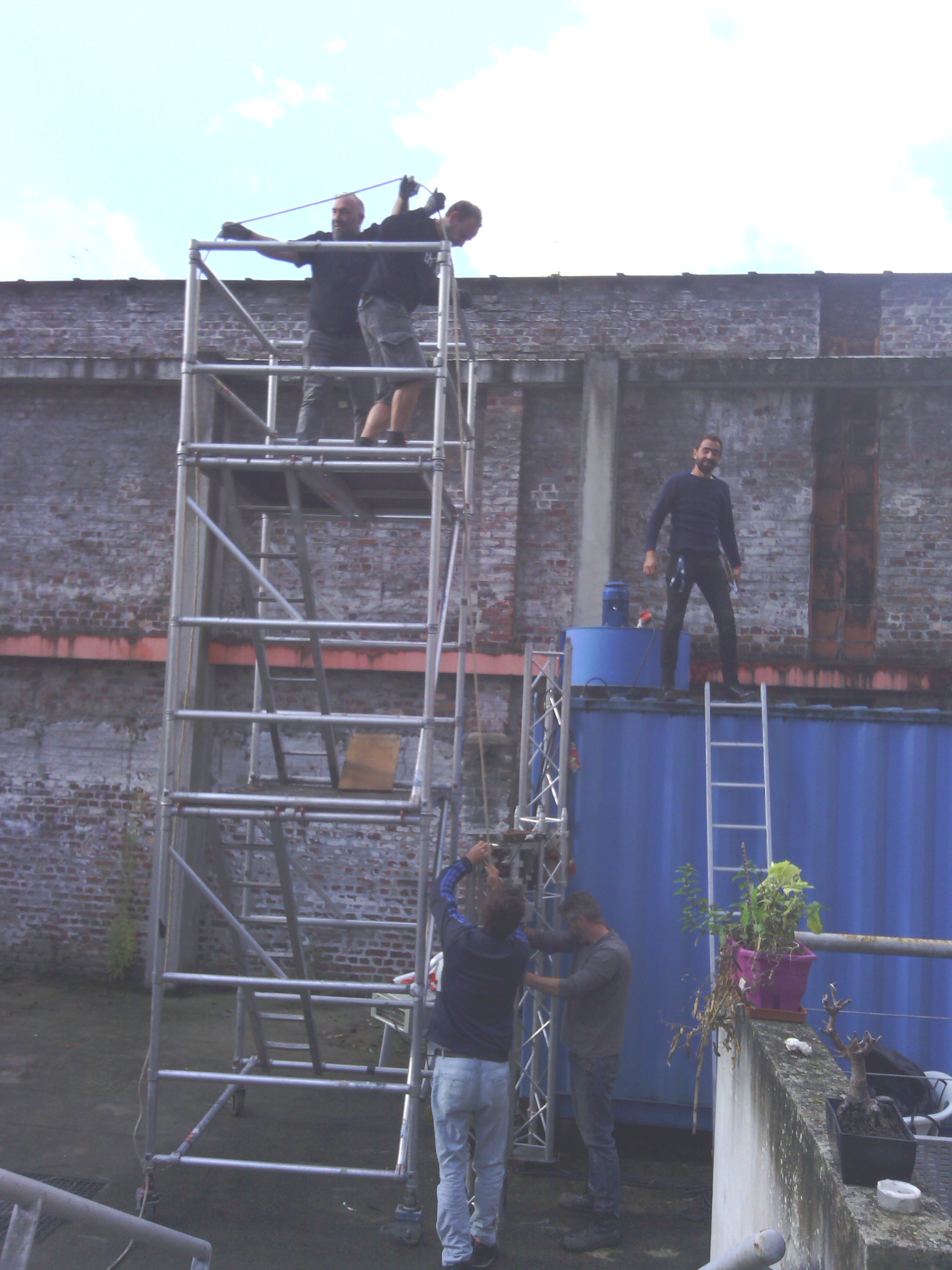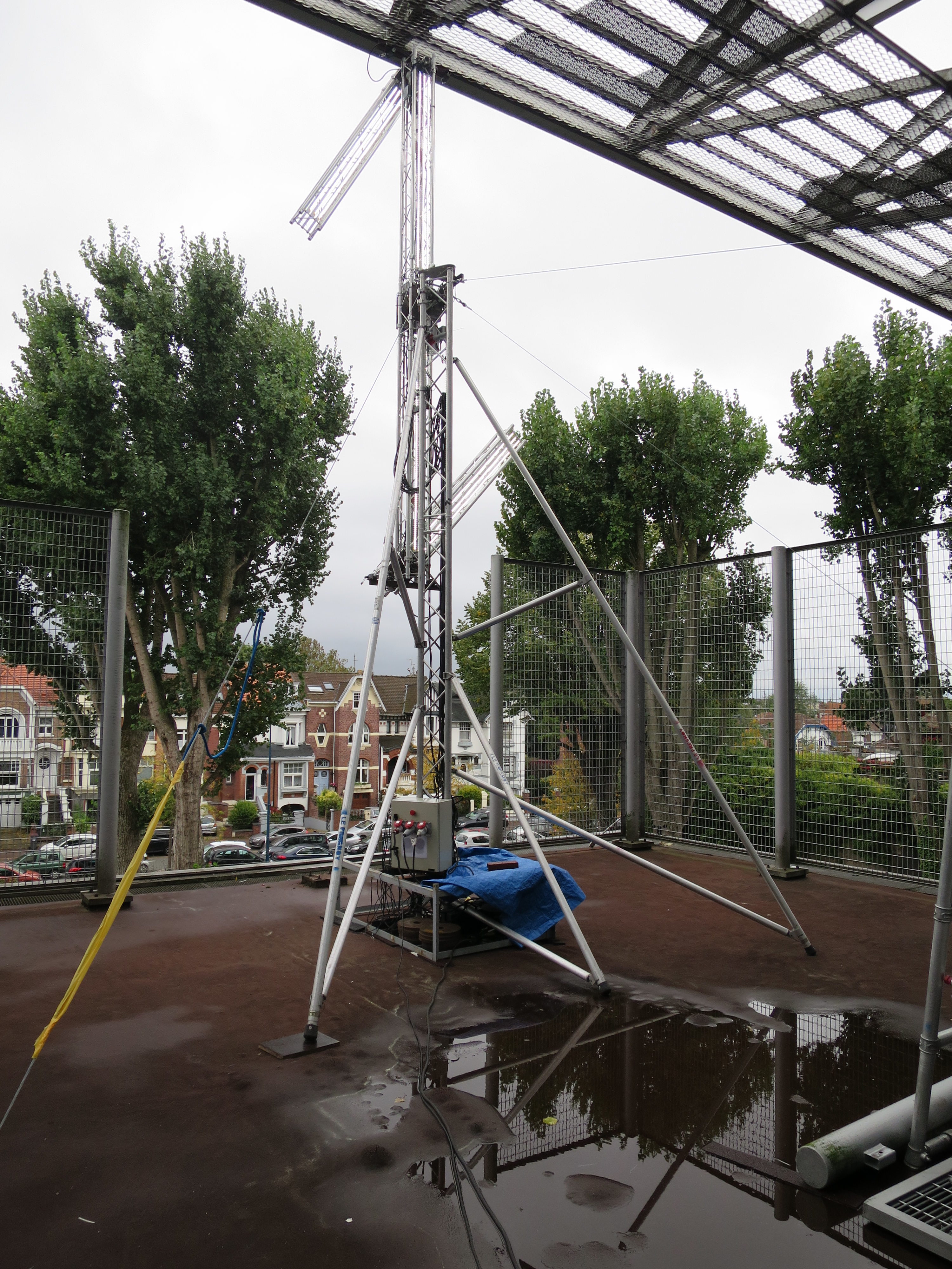 La rencontre entre le spectateur et le télégraphe se fait en deux étapes. Ce sont deux expériences bien distinctes. La première est celle d’un objet cinétique lumineux positionné dans le voisinage immédiat de l’exposition. On le regarde depuis l’une des passerelles aériennes situées sous le toit du Fresnoy. Depuis cette perspective, l’objet donné à voir reste mystérieux, illisible dans sa fonction. Il persiste à composer toute une série de mouvements. Certains semblent faire signe et se répètent comme si une tentative de communication avait été initiée par le télégraphe. La nuit il devient lumineux et continue à se balancer. De ce point de vue on pourrait penser à un manège à sensations. Le sémaphore a été placé sur un toit de la ville, celui de l’Imaginarium, afin de souligner le lien qu’il entretenait avec l’horizon et la perspective de la ville. Une fois rentré dans l’exposition le visiteur aura accès au sens caché de cette machine posée dans le paysage. Face à lui, une série d’écrans qui décryptent en temps réel les messages transmis par le télégraphe. Ce dernier est visible lui aussi depuis une retransmission vidéo. Au fur et à mesure que les signes sont mimés par le sémaphore, les traductions apparaissent en sous-titre un peu à la façon d’un film en VO. S’il le souhaite, le visiteur peut influer sur la composition des messages diffusés. Une tablette tactile l’accompagne dans le choix du contenu à envoyer. Une fois la rédaction du message terminé, il peut assister à sa transmission en temps réel par le télégraphe. Les messages composés par les précédents visiteurs sont aussi visibles. Par la suite ils composeront un registre et se substitueront à ceux que les aléas de l’histoire ont fait disparaître.