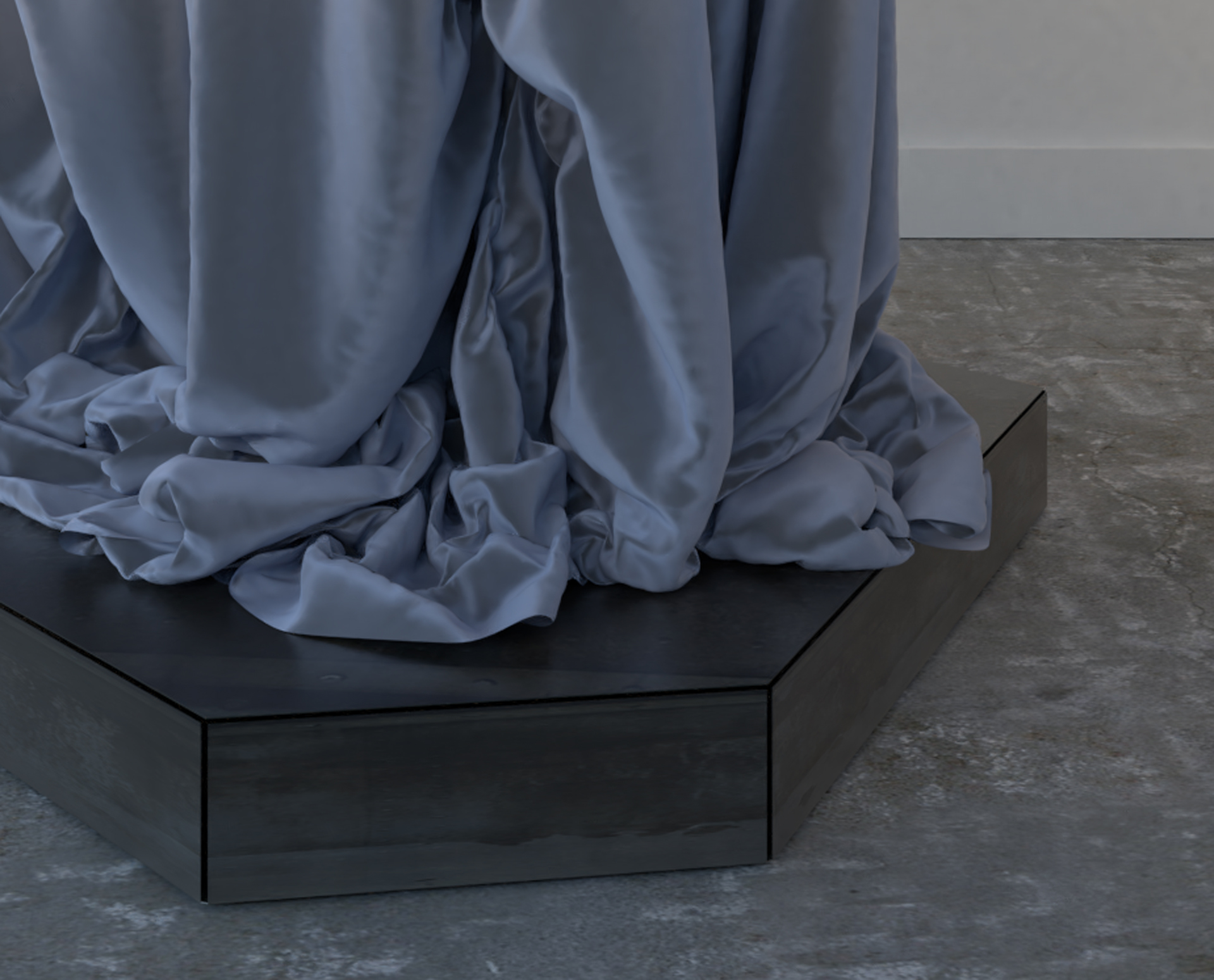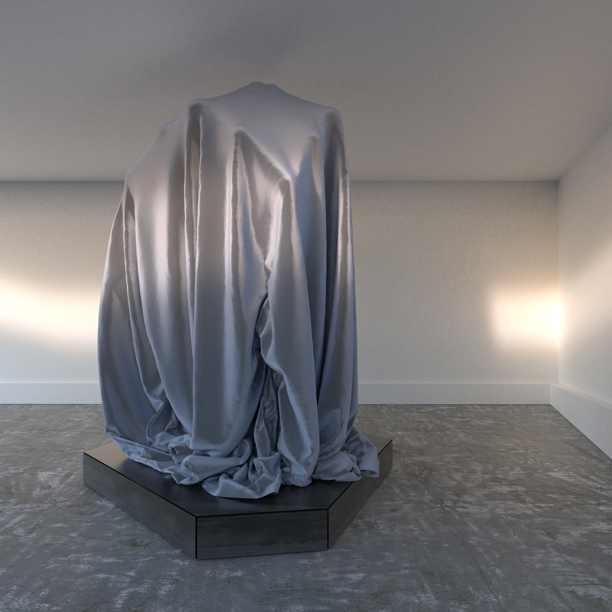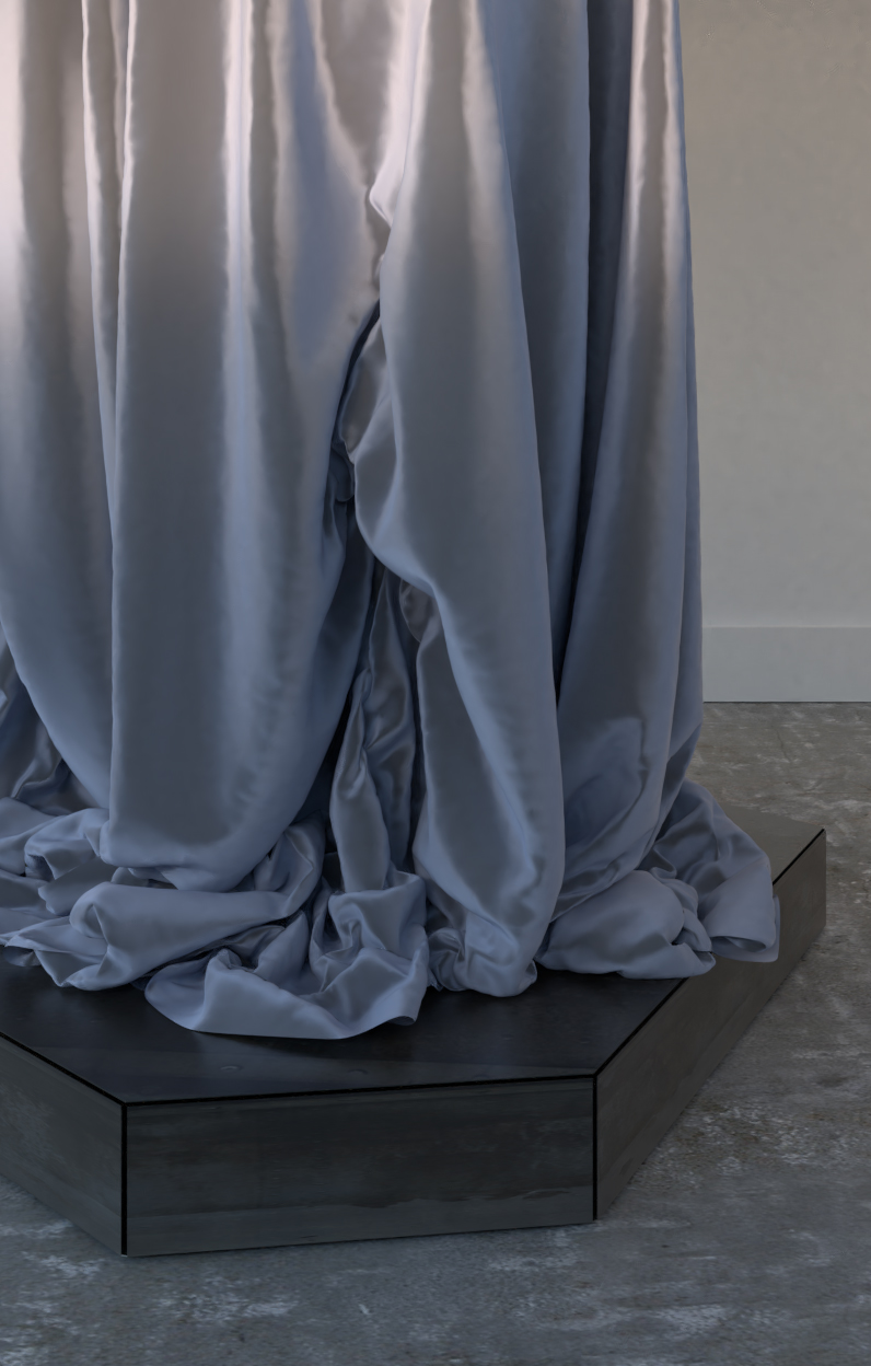 La variété des formes générées autorise une pluralité de lecture. L’objet peut tour à tour évoquer une créature zootechnique autant que le drapé animé d’une statue antique, ou encore un organe interne agité de spasmes incontrôlés. S’inspirant autant de l’Histoire de l’Art classique que de la notion d’informe chère à Robert Morris ou George Bataille, le projet s’emploie à requestionner ces données à l’heure de la robotique et de l’objet technique à comportement.
